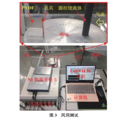 試驗在低(di)速風洞進行(háng),測試平台如(rú)圖3所示。采集(ji)的壓電信号(hào)通過電荷放(fang)大器與NI數據(jù)采集卡相連(lián),運用LabVIEW對信号(hao)🧑🏽🤝🧑🏻進行ADC數模轉(zhuan)換、濾波,頻譜(pǔ)分析(FFT變換);通(tong)過👨❤️👨激光位移(yí)傳感器采集(jí)渦激振動時(shí)壓電梁末端(duān)的y向位移。最(zuì)終在計算💃機(jī)中顯示PVDF壓電(diàn)梁振動的時(shi)域曲線和頻(pin)譜曲線。重點(dian)探尋壓電傳(chuán)感♉距離在不(bú)同🌂圓柱繞流(liu)體直徑尺寸(cùn)和流速變化(hua)的條件下對(duì)流👄場感知特(te)性的影響規(guī)律。試驗條件(jian)如表2所示。實(shi)驗中,由50nmmn到170mm,間(jiān)隔10mm依次測🐉量(liang)不同距離下(xià)的✌️渦街響應(ying)信号。