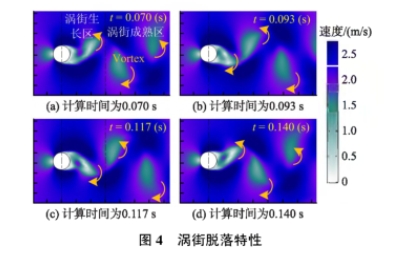 圖4爲流速(su)爲2m/s,圓柱直徑(jing)爲30mm下,産生渦(wō)街脫落的特(tè)性㊙️。由圖叮知(zhī),渦🐉街的交替(tì)脫落需要經(jing)曆一個生長(zhang)、成熟.衰退的(de)過程🏃♂️。PVDF壓電懸(xuan)臂梁因此生(shēng)信号的傳感(gǎn)強度與傳感(gan)距離🚶有關,由(yóu)💘此驗證了木(mu)文💃🏻利用渦街(jiē)傳感的合理(li)性。