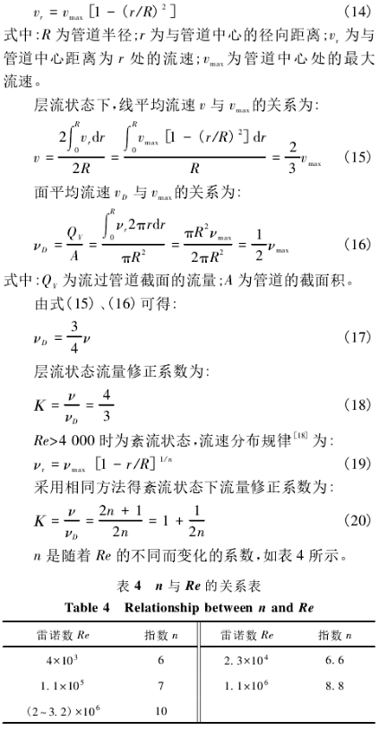 由式(24)可知(zhi),層流時的修正(zheng)系數K=4/3,但對大管(guǎn)徑來說,場🧑🏽🤝🧑🏻内流(liú)💚态一般是紊流(liu)情況。因此,本文(wén)重點分析紊流(liu)✂️時的流量系數(shù)K的修正。