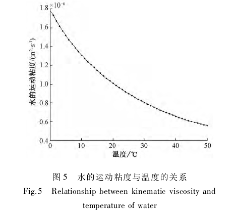 流體粘度(du)受流體溫度的(de)影響具有非線(xiàn)性特點,通過拟(ni)🌏合溫度👣與運動(dong)粘度值,得到不(bu)同溫度下水的(de)運動粘度的曲(qǔ)線,如圖5所示。