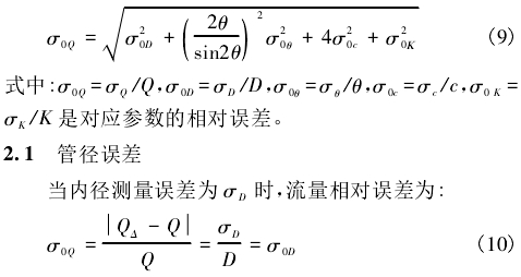 由于(yú)管徑測量精度(du)很高,在此忽略(luè)此項誤差。将θ=45°,σ0θ=0.05%,σ0C=0.1%代(dài)入式(9)得🈲: