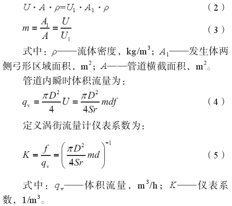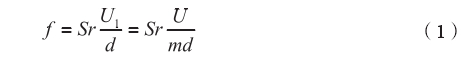 式中(zhōng):ƒ一旋渦分離頻率(lǜ),Hz;Sr-斯特勞哈爾數;U1一(yī)發生體兩側流體(tǐ)✉️平均流速,m/s;U一管道(dao)來流平均流速,m/s;m一(yi)發生體兩側弓形(xing)流通面積㊙️與管道(dao)橫截面積之比。