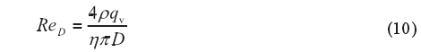 式中:qv一管道内(nei)體積流量,m³/h;p一介質(zhi)密度,kg/m³;η-介質動力粘(zhan)度,Pa.s;D-管道直徑,m。