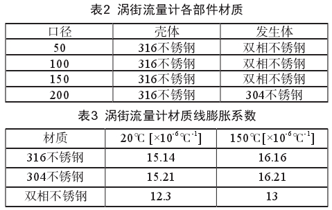 綜上,不同介質下(xia)渦街流量計的标(biāo)定儀表系數須進(jìn)行修🧡正後方可替(tì)代使用,需要考慮(lǜ)的修正因素包括(kuò)介質❓的可壓縮性(xing)(可㊙️膨脹性系數),而(ér)不同介質的可壓(ya)縮性不同,其影響(xiǎng)程度也不同,如空(kong)氣介質和蒸汽介(jiè)🌏質。此外,由于蒸汽(qì)爲高溫介質,需考(kǎo)慮溫度對渦街流(liú)量計機械結構如(ru)殼體和發生體形(xing)變的影響。經測💜試(shì),選用的橫河渦街(jiē)流量計各部件材(cai)質及性質如表2和(he)表3所示。