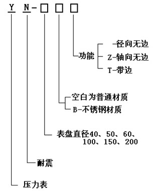 選型說明:功能(néng)選型中“T”僅适用于(yú)Φ60 Φ100 Φ150表盤的壓力表