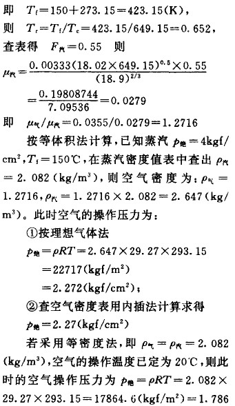 若(ruò)保持密度ρ值(zhi)相同—可稱等(děng)密度法。爲達(dá)到qm氣=ρ汽,在💃🏻ρ汽(qi)=ρ汽=4.3687(kg/m3)的條🧑🏽🤝🧑🏻件❗下(xià),V氣/V汽=1.16546,即此時(shi)空氣的體積(jī)流量應比蒸(zhēng)汽🤞流量增大(da)☂️爲1.14566倍。此時的(de)空氣操作壓(ya)力可從空氣(qi)密度表_匕用(yòng)♊内插法計算(suàn)求🈚出,也可用(yòng)氣體方程式(shì)求出。根據理(li)想氣✊體的壓(ya)力與密度、溫(wen)度等的關🌈系(xì)計算,此時🐕的(de)空氣操作壓(ya)力爲