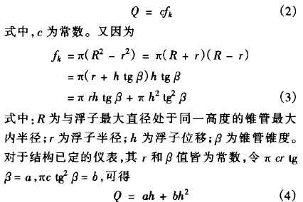由(you)式(4)可知,流量與(yǔ)浮子的位移呈(chéng)非線性關系,要(yào)得到線性刻度(du)或輸出線性的(de)電流信号,就必(bi)須設計㊙️非線性(xìng)修正機構進行(háng)線性化。