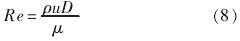 0引言 空化(hua)是液體所(suo)特有的一(yi)種複雜的(de)流體動力(li)現象。當流(liu)場🔴中某處(chù)的局部壓(yā)力較低時(shí),溶解在液(yè)體中的不(bu)凝性氣體(ti)會逸出,當(dang)壓力降低(dī)到對應溫(wēn)度下🏒的飽(bao)和蒸汽壓(yā)時,液體📞開(kāi)始汽化,在(zài)局部低壓(ya)下液體中(zhong)瞬間形成(chéng)大量🈚空泡(pào),這些空泡(pào)随液體流(liu)會在低壓(ya)區時生長(zhang)、膨脹,而到(dào)達高壓區(qū)時又會收(shou)縮、潰滅,這(zhè)種空泡爆(bao)發性生長(zhǎng)、膨脹🔞、收縮(suo)、潰滅的整(zhěng)個過程稱(chēng)爲水力空(kōng)化現象。空(kong)化現象的(de)發生有利(lì)有弊,目💜前(qian)空化技術(shu)成功地運(yun)用在工業(yè)廢水處理(li),飲用水消(xiao)毒,選🌈礦等(děng)方面。在水(shui)動力學研(yán)究領域,空(kong)化普🥵遍出(chu)現在核動(dòng)力系統、低(di)溫熱交換(huàn)器、液體火(huo)箭發動機(jī)等工程領(ling)域。當常溫(wēn)流體流經(jīng)管路、泵、閥(fá)門、流量計(ji)等各種節(jie)流元件時(shi),節流壓降(jiàng)容易導緻(zhi)空化的形(xíng)成與發💚展(zhǎn)。空化不僅(jǐn)會使節流(liu)元件及下(xià)遊管道被(bèi)空蝕損壞(huài)😘、設備效率(lǜ)🥵降低,而且(qie)可能導緻(zhì)流量測量(liàng)不準、系統(tong)運行👅不穩(wěn)定🐅。所以,對(dui)孔闆流量(liang)計内流體(tǐ)空化流動(dòng)特性進行(hang)理論與實(shi)驗研究具(jù)有重要的(de)工業實用(yòng)價值。 兩通(tōng)道非标準(zhun)孔闆流量(liàng)計與标準(zhǔn)孔闆流量(liàng)計相比,具(ju)有臨界雷(lei)諾數低、永(yong)久壓降低(di),測量穩定(dìng)性高和節(jiē)能等優勢(shi)。但沒有考(kao)慮在入口(kǒu)壓力較高(gao)或流速較(jiao)大的情況(kuàng)下,節流💞元(yuan)件附近可(kě)能㊙️發生的(de)空化🐅現象(xiàng)對流量計(ji)測量✊精度(dù)會産生影(ying)響。本💋文在(zai)其設🔞計的(de)流量計的(de)基礎上,數(shu)🤩随入口壓(ya)力的變化(huà)規律以及(ji)流出系數(shù)和壓力損(sǔn)失随雷諾(nuò)數的變化(huà)規律🧑🏽🤝🧑🏻,并讨(tao)論空化的(de)發生對孔(kǒng)闆流量計(jì)測量精度(dù)的影響,對(duì)提高測量(liàng)精度有一(yī)定的參考(kǎo)價值。 1物理(lǐ)模型與數(shù)學模型 1.1幾(jǐ)何模型和(hé)網格劃分(fèn) 因節流元(yuan)件爲軸對(duì)稱結構,可(ke)簡化爲二(er)維模拟。本(ben)文♉孔闆是(shì)根據國家(jiā)标準GB/T2624———2006《用安(an)裝在圓形(xíng)截面管道(dao)中的差壓(yā)☀️裝置測量(liàng)滿管流體(tǐ)流量》,其幾(jǐ)何結構如(ru)圖1所示。管(guan)道直徑D=100mm,R=50mm,孔(kong)闆中心孔(kong)半徑r1=17.5mm,環孔(kong)内半徑r2=38.5mm,環(huán)孔外半徑(jìng)r3=49mm,孔闆厚度(dù)E=3mm,節流孔厚(hou)㊙️度e=1mm,斜角F=45°,等(deng)效直徑比(bi)β=0.7。孔闆上、下(xia)遊的直管(guan)段長度分(fèn)别取5D和15D。 利(lì)用ICEMCFD進行網(wang)格劃分,如(ru)圖2所示,整(zhěng)體采用四(si)邊形結構(gòu)化💁網格,從(cong)⚽管道兩端(duān)到孔闆逐(zhu)漸加密,孔(kong)闆處進🔅行(hang)局部加密(mì),網格總體(ti)數量爲176262。 1.2數(shu)學模型 采(cai)用Schnerr-Sauer空化模(mó)型、Mixture模型與(yu)RNGk-ε湍流模型(xíng)聯合進行(háng)計算。Schnerr-Sauer空化(hua)模型的蒸(zheng)汽輸運方(fang)程[16]爲 式中:α———蒸(zhēng)汽的體積(jī)分數; t———時間(jian),s; `V ———蒸汽平均(jun1)速度,m/s; ρ———密度(dù),kg/m3;l、ν、m分别爲液(ye)相、蒸汽相(xiang)、混合相。淨(jing)質量源表(biao)達式☎️如下(xia):` 式中:Rb———氣泡(pào)直徑,m; Pb———氣泡(pào)表面壓力(lì),Pa; P———局部遠場(chǎng)壓力,Pa。 蒸汽(qi)體積分數(shù)和單位液(yè)體體積内(nèi)氣泡數量(liang)nb的關🐆系❗如(rú)下: 式中:Psat———飽(bao)和蒸汽壓(yā),Pa; nb———取單位體(tǐ)積氣泡的(de)數量,nb=1×1013/m3 1.3模型(xing)參數的設(she)置 近壁區(qu)域采用Standardwallfunction,壓(yā)力-速度耦(ǒu)合項采用(yong)SIMPLEC算法,動量(liang)和湍流動(dòng)能采用一(yi)階迎風差(cha)分格式。邊(bian)界條件采(cai)用壓力入(rù)口和壓㊙️力(li)出口,進口(kou)壓力的取(qǔ)值範圍爲(wei)1.01355×105~3.5×105Pa(絕對壓力(li)🧑🏾🤝🧑🏼,以下均爲(wèi)絕對🐅壓力(li)),出口壓力(lì)取值爲0,操(cao)作🆚壓強取(qǔ)值爲1.01325×105Pa。湍流(liu)參數選擇(zé)湍流強度(du)和水力直(zhí)徑🐉,汽化壓(yā)強取值3.166×103Pa,液(ye)相爲常🔞溫(wen)下的水,氣(qi)相選擇水(shuǐ)蒸氣。以上(shang)各個方程(chéng)的殘差至(zhi)少達到10-3,保(bǎo)證計算結(jie)果🙇♀️充分收(shou)斂。 2數值模(mo)拟結果分(fèn)析 2.1空化現(xiàn)象數值模(mo)拟分析 空(kōng)化數是描(miáo)述水力空(kong)化和空化(hua)狀态的一(yi)個重要參(cān)數⛱️,是表征(zheng)空化特性(xing)的無量綱(gāng)參數。其定(ding)義爲 式中(zhong):P0———孔闆下遊(yóu)恢複壓力(lì),Pa; Pν———常溫下流(liú)體的飽和(he)蒸汽壓,Pa; u0———孔(kong)的平均流(liú)速,m/s; ρ———操作溫(wēn)度下流體(tǐ)的密度,kg/m3。 空(kōng)化數的物(wu)理意義爲(wei):σ=抑制空化(hua)産生的力(lì)/促使空😄化(huà)出現的力(lì)。理論上講(jiǎng),隻要σ≤1就應(ying)該産生空(kōng)化,σ≤0.5就必然(rán)産生穩😄定(dìng)的♻️空化。即(ji)使🏃🏻♂️在環境(jìng)壓強爲幾(ji)十兆帕🧡時(shí),隻要射流(li