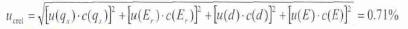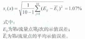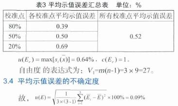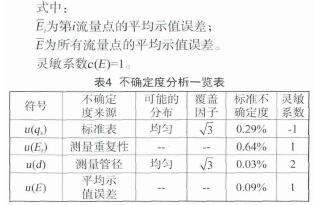 管道式液(ye)體流量計(jì) 在線校準(zhǔn)方法的基(ji)礎上,選擇(ze)了一款典(diǎn)型的 管道(dao)式電磁流(liu)量計 作爲(wei)本次測量(liang)結果不确(que)定度評定(dìng)的研究對(duì)象。通過👨❤️👨對(dui)其🌐測量結(jié)果不确定(ding)度的評定(dìng)及分析,确(què)保了液體(ti)流量計在(zài)🏃🏻♂️線校準的(de)準确可靠(kao)。 引言 随着(zhe)工業技術(shu)的迅速發(fā)展,流量測(ce)量技術日(rì)益成✉️熟,液(ye)體流量計(jì)作爲液體(tǐ)流量測量(liang)的重要計(jì)量器具,已(yǐ)廣泛用于(yú)紡織印染(ran)、石油化工(gōng)、冶金制藥(yao)、熱電🌈、造紙(zhǐ)、環保、水利(lì)、市政等🤞領(lǐng)域。然而,各(gè)行各業在(zai)用管道式(shì)液體流量(liang)計普遍存(cún)在不便拆(chai)卸,導緻無(wú)法離線送(song)檢的問題(ti),這就急需(xū)法定計量(liàng)技術機構(gòu)提供在線(xian)校準以解(jie)決液體流(liú)量計溯源(yuan)難題。目前(qián)📧,國家尚未(wei)頒布✏️關于(yú)液體流量(liang)計在線檢(jiǎn)定/校準的(de)檢定規程(chéng)或校準規(gui)範。 1校準要(yào)求 1.1校準環(huan)境及條件(jian) 液體流量(liang)計檢定實(shi)驗室,将校(xiào)準标準器(qi)及被檢流(liu)量計按💃🏻要(yao)✌️求安裝于(yú)液體流量(liang)計檢定裝(zhuang)置上。 1.2校準(zhun)标準器 0.5級(ji) 便攜式超(chao)聲波流量(liàng)計 ,傳感器(qi)測量範圍(wéi):(Φ15~Φ800)mm。 1.3被檢流量(liàng)計 管道式(shi)電磁流量(liàng)計,其最大(dà)流量爲100m3/h,口(kou)徑爲Φ80mm。 1.4校準(zhun)描述 基于(yu)超聲波時(shí)差法的原(yuán)理,采用示(shì)值誤差的(de)方法進行(hang)比對。 2數學(xue)模型 2.1 電磁(cí)流量計 相(xiang)對示值誤(wù)差按式(1)計(ji)算 式中: E爲(wèi)電磁流量(liang)計的示值(zhi)誤差,%; q爲電(diàn)磁流量計(jì)示值(瞬時(shí)值),m3/h; qs爲标準(zhun)器顯示值(zhí)(瞬時值),m3/h。 标(biao)準器顯示(shi)值(瞬時值(zhi))的計算公(gong)式見式(2): 式(shi)中: qs爲标準(zhǔn)器顯示值(zhí)(瞬時值),m3/h; v1爲(wèi)聲道上線(xian)平均流速(sù),m/s; K爲流速分(fèn)布修正系(xi)數; d爲管道(dào)内徑,m。 2.2靈敏(mǐn)系數 2.3不确(que)定度的傳(chuán)播 上式中(zhōng)各輸入量(liàng)不相關,電(diàn)磁流量計(jì)示值誤差(chà)的标準不(bu)确定度: 3輸(shu)入量的相(xiang)對不确定(dìng)度評定 3.1标(biāo)準器示值(zhí)的不确定(dìng)度 根據标(biāo)準器檢定(ding)證書可知(zhi)其最大允(yǔn)許誤差爲(wei)±0.5%。按均🌈勻分(fèn)布考🌈慮,k=,故(gu), 3.2測量管徑(jing)引入的不(bu)确定度 管(guǎn)徑測量誤(wù)差來源于(yu)卡尺,根據(jù)卡尺檢定(ding)證書可知(zhi)💔其最大允(yun)許誤差爲(wèi)±0.04mm,實測管徑(jìng)爲81mm。按矩形(xíng)分布考慮(lǜ),k=,故, 3.3測量重(zhong)複性的不(bú)确定度 測(ce)量重複性(xing)引入的不(bu)确定度可(kě)以采用多(duo)次測量獲(huo)得,采用A類(lei)評定方法(fǎ)評定。确定(dìng)3個校準流(liu)量點,每🔞個(ge)流量點校(xiao)準10次,校☎️準(zhǔn)結果如表(biao)1。 取校準點(dian)80%處求得10個(gè)示值誤差(cha),可得:1077-7應用(yong)下式所示(shi)的🐅貝🏃♀️塞爾(ěr)公🔆式,計算(suan)單次實驗(yan)标準偏差(cha): 分别将其(qi)它校準點(diǎn)各次流量(liang)計示值誤(wu)差值該标(biao)準偏差可(ke)求得其它(ta)校準點的(de)實驗标準(zhun)偏差。由于(yu)🤩在實際校(xiào)準時,各校(xiao)準點的校(xiào)準結果取(qu)10次測量的(de)平均值,故(gu),算術平均(jun)值的實驗(yàn)标準偏🍓差(cha)爲: 計算求(qiú)得各校準(zhǔn)點的單次(cì)及算術平(ping)均值的實(shí)驗标準💯偏(piān)差如表2所(suo)示。 爲了減(jiǎn)少風險,取(qu)最大實驗(yàn)标準差作(zuo)爲測量重(zhong)複性的标(biao)🧡準🐕不确定(dìng)度,則: 由于(yú)溫度、壓力(li)影響相對(dui)較小,忽略(luè)其不确定(ding)度影響。另(lìng)外,由于重(zhòng)複性分量(liàng)包含人員(yuan)讀數引入(rù)的不确定(ding)度分🌈量,爲(wei)避免重複(fú)計算,故忽(hu)略人員讀(dú)數引入的(de)不确定度(dù)分量。 4.合成(chéng)不确定度(dù) 4.1不确定度(dù)彙總表 4.2合(hé)成标準不(bu)确定度計(jì)算 以上各(ge)項标準不(bu)确定度分(fèn)量互不相(xiàng)關,所以合(he)成标準🙇🏻不(bu)确定度爲(wèi): 4.3擴展不确(què)定度 取包(bao)含因子K=2,故(gù),測量結果(guo)相對擴展(zhǎn)不确定度(du)爲:Urel=k?ucrel=1.4%(k=2) 5不确定(ding)度的應用(yòng) 衆所周知(zhī),流量計量(liang)是計量科(kē)學技術的(de)組成部分(fèn)之一,它與(yǔ)㊙️國民經濟(ji)、國防建設(she)、科學研究(jiu)有密切的(de)💜關系,流量(liang)💁計量的準(zhun)🍓确與否對(duì)保證産品(pǐn)質量、提高(gāo)生産效率(lǜ)、促進科學(xue)技術的發(fa)展具有重(zhòng)要作用。爲(wei)此,液體管(guan)道流量計(jì)在線溯源(yuán)方法的研(yan)究是确保(bǎo)在用流量(liang)計準确測(ce)量的重要(yào)保障,在線(xian)校準結果(guo)不确定度(dù)直接♋決定(ding)流量計計(ji)量的正确(que)率,它是評(píng)價在線校(xiào)準能力的(de)關鍵指标(biāo)。本文通過(guo)評定和分(fen)🆚析典型的(de)管道式電(diàn)磁流量計(ji)測量結果(guǒ)的不确定(dìng)度,對解決(jue)流量計在(zai)線溯源難(nan)題、提升流(liu)量計在線(xiàn)🌏校準能力(lì)具有積極(ji)意義。