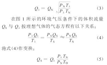 将式(1)應用于圖(tú)1的情況,可得到(dào)流量計在有入(rù)口負壓(相㊙️當🌈于(yú)入👉口氣壓低于(yú)标準大氣壓)下(xia)的入口體🐉積流(liú)♋量Qλ。對Qλ可類似寫(xiě)👉成: