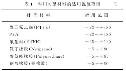 2)被測介質溫(wen)度。根據被測(cè)工藝介質的(de)溫度範圍,選(xuǎn)擇測量管内(nei)襯材料及傳(chuan)感器線圈的(de)漆包線的耐(nài)溫等級,即襯(chen)裏材料☁️應與(yu)介質溫度相(xiàng)适應,常用測(ce)量管襯裏材(cái)料㊙️建議根☁️據(ju)表1選擇。