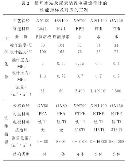 某項目的循(xun)環冷卻水站(zhàn)及尿素裝置(zhì)液體流量測(cè)量點的😄特點(dian):循環冷卻水(shuǐ)站的工藝管(guan)徑大、壓力低(dī)、水中含有🚩氯(lǜ)化物等腐蝕(shí)性介質,而且(qiě)工藝管道敷(fū)設在地🌏面以(yǐ)下;尿素裝置(zhi)流量測量介(jiè)質有熔融尿(niao)素、甲氨溶液(ye)等,具有腐蝕(shí)性強、易結晶(jīng)的特點。同時(shí)要求儀表測(cè)量精度優于(yú)±0.5%。鑒于上述工(gong)🐅況特點及要(yào)求,選用電磁(cí)流❤️量計,表2爲(wei)該項目工況(kuang)條件及電磁(cí)流量計的💛性(xìng)能指标。其中(zhōng),循環冷卻水(shuǐ)站的電磁流(liu)量計選用分(fèn)體型,檢測器(qi)的防護等級(ji)爲IP68,信号轉換(huàn)器的防護等(děng)級爲IP67;尿素裝(zhuang)置所用電磁(ci)流量計的防(fáng)護等級爲IP67,儀(yi)表運💯行至今(jīn)效果良好。