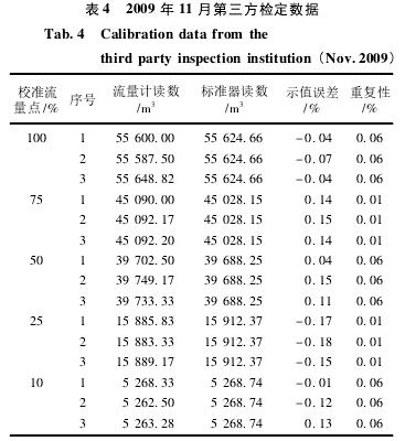 摘 要:爲更好(hao)地将電磁流(liú)量計在線檢(jian)定方法運用(yong)于實際現✍️場(chang)操作之中,根(gen)據《計量法》和(he)《 管道式電磁(cí)流量計 在線(xiàn)校準要求》(以(yǐ)下簡稱《要求(qiú)》),對不同工況(kuang)下的十♌幾台(tai)大口徑✂️電磁(cí)流量計進行(hang)現場檢測和(he)校驗,所得數(shu)據與出廠标(biāo)定的原🔴始數(shù)據能夠很好(hǎo)地吻合。在對(dui)在線檢測🌈過(guò)程中相關細(xi)節進行💰總結(jie)後,證實了電(diàn)磁流量計的(de)在線檢定是(shi)切實可行和(he)有效的,能夠(gou)廣泛地運用(yòng)于大口🐇徑流(liú)量計的現場(chǎng)檢定。 0 引言 流(liu)量是給排水(shui)和水處理等(deng)相關行業常(cháng)用的過程控(kòng)制和計量的(de)重要參數和(he)生産指标,它(tā)直接關系☂️到(dao)水處理的進(jìn)🌐程與質量。電(dian)磁流量計 由(yóu)于其結構簡(jiǎn)單,傳感器内(nei)沒有可動部(bù)件,沒有節流(liu)裝置,不存在(zài)機械轉動和(he)磨損,不會産(chǎn)生壓力損☔失(shī),并因其精度(dù)㊙️高、線性好、運(yun)行穩定等優(yōu)點,在給排水(shuǐ)、污水處理、引(yǐn)水工程等項(xiàng)目中得到廣(guǎng)泛的應用,用(yong)以進行内部(bu)計量、過程控(kòng)制和對外貿(mao)易結算。電💰磁(ci)流量計作爲(wei)一種普遍的(de)計量器具,按(àn)照《計量法》的(de)規定,必須在(zài)🏃♂️一定的周期(qi)内對該器具(jù)進行✌️檢定或(huo)校準。同🈲時,使(shi)用方爲保🔅證(zheng)流量計使用(yong)的可靠性,也(ye)對 電磁流量(liàng)計生産廠家(jiā) 提出了這個(gè)要求。 然而,應(yīng)用于水務行(háng)業中的電磁(cí)流量計口徑(jing)較大,安裝環(huan)境差💰等因素(sù)導緻流量計(ji)很難甚至不(bú)允許拆卸之(zhī)後送到标定(dìng)裝置中進行(hang)複核。另外,由(you)于此類流量(liang)計的現場工(gong)作條件與實(shí)驗室校驗設(shè)置條件存在(zài)偏異,因此,電(dian)🌍磁流量計,尤(yóu)其是 大口徑(jìng)電磁流量 在(zai)使用一個階(jie)段之後,測量(liàng)也許會存在(zài)一定的不确(que)定🏃♀️性偏㊙️差🛀。在(zài)線大口徑流(liu)量計不停水(shui)的校準和檢(jian)定問題亟待(dài)解決。 1 電磁流(liu)量計的在線(xian)檢定方法 目(mu)前,普遍應用(yong)的電磁流量(liàng)計在線檢定(dìng)手段主要有(you)标準表法👈和(he)電參數法。電(diàn)參數法是根(gen)據管道式電(diàn)磁流量計的(de)測量原理🤩,對(duì)影響在線工(gōng)作的管道式(shi)電磁✌️流量計(ji)的相關參數(shù)進行檢定( 如(rú)勵磁線圈對(duì)地絕緣電阻(zǔ)、電極對地( 接(jiē)液) 電阻、勵磁(cí)線圈電阻和(hé)流量計電纜(lǎn)線電阻) ,測♍量(liàng)控制相關參(can)數在一定🔴允(yun)許的變化✨範(fan)圍内與出廠(chǎng)檢定的原始(shi)數據✂️進行比(bǐ)較溯源✊,使其(qi)保持在出廠(chǎng)時的标準準(zhǔn)确度以内,以(yi)滿足使用要(yao)求。标準表法(fǎ)是以标準❤️表(biao)爲标準器具(ju),使流體在相(xiàng)同時間間隔(ge)内,同時連續(xu)通過标準表(biǎo)和被校表,比(bǐ)較兩者的🛀🏻輸(shu)出流量值的(de)偏差,從而确(què)定被校流🔴量(liang)計與标準表(biǎo)所示的流量(liang)值的關系。 對(duì)于以上兩種(zhǒng)方法孰優孰(shú)劣,不能斷然(rán)判明,但根據(ju)🥰以上兩種方(fāng)法的在線檢(jian)定過程均能(neng)反映測量性(xing)能。 2 電參數法(fǎ) 衆所周知,電(dian)磁流量計是(shì)根據法拉第(di)電磁感應定(dìng)律來測量💰導(dǎo)⭐電液體體積(ji)流量的儀表(biǎo)。法拉第電磁(cí)💋感應公式如(rú)式👣(1) 所示: E=K×B×V×D (1) 式中(zhong): B 爲流量計勵(lì)磁線圈感應(ying)磁場的強度(dù);V爲被測電液(yè)導體的流速(sù);D爲管徑;K爲儀(yi)表系數。宏觀(guān)上把導電液(yè)體看♉成導體(ti)。 由式(1) 可知管(guan)徑D與系數K都(dōu)爲固定參數(shu)。在一定流速(sù)下,隻要㊙️保證(zhèng)參數 B 的穩定(ding),那麽感應電(dian)動 E也随之穩(wěn)定,即在進行(háng)電參數法在(zai)線檢定時,若(ruò)參數B保持在(zài)出廠校準時(shí)的允許範圍(wéi)内時,就可證(zheng)🤟明該流量計(jì)目前所測🔞流(liu)量的精度仍(reng)與出廠時保(bao)持一緻[3]。 影響(xiang)電磁感應強(qiang)度 B 的因素,就(jiu)流量計本身(shen)而言,應檢🏃驗(yàn)勵磁線圈電(dian)阻(扣除溫度(dù)變化引起的(de)差值)、勵磁線(xiàn)🐕圈的絕緣以(yi)及❓勵磁電流(liú)的幅值。另外(wai),我們需✏️檢查(cha)電❌極信号電(diàn)路絕緣性能(neng)是否良🐇好,證(zhèng)明原本🐕微弱(ruò)的流量信号(hao)有沒有額外(wai)大的損失🍉; 測(ce)量電極🏃🏻♂️的接(jiē)液電阻,評估(gu)電極表面是(shì)否被過🏃♂️度氧(yang)化、腐蝕、結垢(gou)或損傷🍓而影(ying)響正常測量(liàng); 檢查接地電(dian)阻等情況并(bing)排除雜亂信(xin)号的幹擾。同(tong)時,使🌈用精度(du)佳的模拟信(xìn)号器檢測轉(zhuan)換器的工作(zuò)狀況。 2.1 電參數(shù)法的檢定過(guo)程 在檢定過(guò)程中,首先,觀(guān)察轉換器内(nei)的各項參數(shù)設置是否有(yǒu)✨被改動過,要(yao)求轉換器的(de)各項參數設(shè)置與電🐆磁流(liu)💃🏻量計出廠🔴銘(ming)牌上的一緻(zhì); 然後觀察兩(liang)根電纜( 勵磁(cí)電纜、信号電(diàn)纜) 是否🈚有損(sǔn)傷,是否保持(chí)原🤩樣。《管道式(shì)電磁流量🈲計(jì)在線校