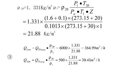 相對(duì)應(Qmin)1=×a1×3600=2.8×0.00205×3600=20.664m3/h對于(yú)80A(口徑爲(wei)80的渦街(jie)流量計(jì)):