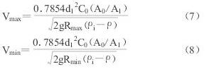 因(yīn)此,孔闆流(liu)量計在測(ce)定流量時(shí)有一允許(xu)測量範圍(wei),此範圍又(yòu)受R值Rmin與Rmax的(de)影響。在确(que)定的孔闆(pan)流量計情(qing)況下(即A0/A1一(yi)定),由R值的(de)範圍可以(yi)确定流量(liàng)V的範圍Vmax與(yu)Vmin: