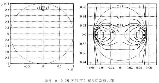 取b= 0.9R,θ= 0.0555rad,繪制(zhì)W分布如(rú)圖4所示(shì)。