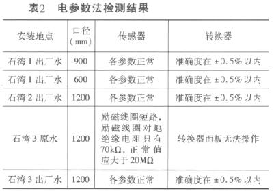 (1)石灣水廠三(san)車間的原水流量(liang)計在使用超聲波(bo)流量計比對法💛檢(jiǎn)測的結果誤差達(da)-4.78%;用電參數法檢測(cè),發現其勵磁線圈(quan)已🛀短路,勵磁線圈(quan)對地絕緣電阻隻(zhī)有70kΩ,正常值應大于(yu)20MΩ,兩💃🏻種方法的結果(guǒ)🌏均顯示其異🔴常。