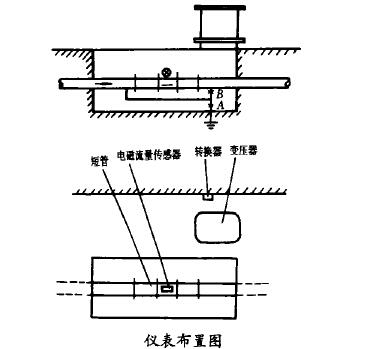 勘察現(xiàn)場,儀表布置(zhì)及周圍環境(jing)如下圖所示(shi)。電磁流量計(ji)🈲安♍裝、電氣連(lián)接和接地基(jī)本符合《使用(yòng)說明書》規定(dìng)的要求。與流(liu)量傳感器連(lián)接的管道是(shì)有水🈲泥襯裏(lǐ)的鋼管,流量(liang)傳🧑🏽🤝🧑🏻感器上下(xià)遊緊接一段(duàn)長0.5m的無襯裏(li)的短鋼管。電(diàn)磁流量轉換(huan)器與傳感器(qì)相距✉️約10m。