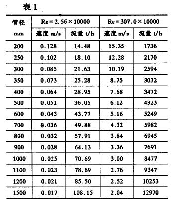 ①流(liú)體常用流速範圍(wéi)與雷諾數關系見(jiàn)表1。