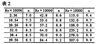 雷諾數與尼庫(ku)拉茲系數的關系(xi)見表2。