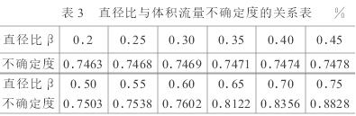 據(ju)式(4)可以計(jì)算出直徑(jìng)比β與流量(liang)不确定度(du)δQn/Qn的關系如(ru)表🐅3所示。