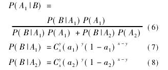 用C事件(jiàn)代替式(6)~(8)中的B事件(jian),計算可得C發生的(de)情況下A1的可信度(du)爲7.08%,即後驗概率爲(wei)P(A1|C)=7.08%,P(A2|C)=92.92%。