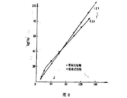 采用上(shàng)述轉動(dong)式浮子(zi)流量計(jì),在使用(yong)中取得(dé)較滿意(yi)的效果(guo)。圖㊙️8爲實(shí)測兩條(tiao)典型的(de)流量曲(qu)線。試驗(yàn)介質:水(shuǐ),輸出指(zhǐ)示✏️:,A,浮子(zǐ)最大直(zhí)徑爲功(gōng)7mm;錐形管(guǎn)長度爲(wei)40rn幻n,錐度(du)爲20:1。曲線(xian)(1)爲原來(lai)結構測(cè)得的流(liú)量曲線(xian),曲線(2)爲(wei)改進後(hou)♉轉動式(shi)浮子的(de)流量計(jì)測得的(de)結果。
