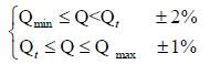 摘 要:闡述(shu)高壓氣體渦輪流(liu)量計 并介紹工作(zuò)原理、結構特點、性(xing)能測試、計量特性(xìng)等,以此🧑🏽🤝🧑🏻證明高壓(ya)氣體渦輪流量計(jì)可以作爲貿易計(jì)量應用在🌈高壓管(guan)線上 0 引 言 天然氣(qì)作爲重要的潔淨(jìng)能源,近幾年在城(chéng)市中的應用迅猛(meng)發展。在當今市場(chang)經濟的體制下,人(ren)們對經濟🆚效益🧑🏽🤝🧑🏻的(de)日益重視,作爲供(gòng)氣、用氣雙方進行(hang)貿易結算依據的(de)計量問🏃♀️題日益突(tu)顯起來[1],特别對高(gao)壓天然氣的計量(liàng)形勢尤爲嚴☂️峻,“計(jì)量就是計錢”的觀(guan)念深入人心。而世(shi)界能源供求日益(yi)緊張,人們都十分(fèn)關心并尋求一種(zhong)精度高🛀,适應性強(qiáng)的流量計來測量(liang)天然氣流❤️量,以減(jiǎn)少、避免天然氣貿(mào)易糾紛。目前國内(nèi)渦輪流量計生産(chan)廠家均是以中低(dī)壓爲主,對高壓的(de)涉及較少,規格種(zhǒng)類繁多、結構複雜(za)。供油系統、防沖擊(jī)結💰構等因素均是(shì)直接影響流量計(jì)使用壽命。與此同(tong)時,爲了😍順應國家(jia)能源安全的戰略(luè)部署,保證國家能(neng)源輸運安全,響應(ying)建設“創新型”國家(jiā)的發展戰略,自主(zhu)知識産權且滿足(zú)♌工業性應用要求(qiú)的精度佳高壓渦(wō)輪流量計。 1 渦輪流(liú)量計的工作原理(li)與流量特性 1.1 工作(zuo)原理 氣體渦輪流(liú)量計 是一種帶機(ji)械計數器并用于(yú)測量氣體流量的(de)流量計,其🎯工作原(yuán)理如圖1 所示:當氣(qì)流進入流量計時(shi)🏃🏻,首先🙇🏻經過特殊整(zhěng)流⛱️器整流并加速(sù),在流體的作用下(xià),渦輪克服阻⛹🏻♀️力矩(ju)開始轉動。當力矩(jǔ)達到平衡時渦輪(lún)轉速穩定,此時其(qi)轉速與氣體工況(kuang)流量成正比,并通(tōng)過齒輪減速傳動(dong)以及磁耦合🚩聯接(jie)驅動字輪計數器(qi)轉動,直接累積氣(qi)體👉的工況體積總(zong)量。 因通過渦輪的(de)流量與渦輪轉速(sù)成正比,高頻信号(hao)✨脈沖🚩輸♍出頻率 與(yu)渦輪轉速存在下(xia)列 |=nZ 對一定精度的(de)流量計而言,在一(yī)定的流量範圍内(nèi),其儀表系💛數K 應接(jiē)近常數。理論上儀(yí)表系數K 與體積流(liu)量☎️q成如👌下關系,即(jí) 式中:K—儀表系數,爲(wei)工況條件下每立(li)方米通過流量傳(chuán)感器時輸出的脈(mo)沖數,1/m3 ; q—工況體積流(liú)量m3 s 。 綜上所述,儀表(biǎo)系數K 在實際上除(chu)渦輪導程、葉片數(shu)、葉片寬度、螺旋升(shēng)角、流量計流體通(tōng)道等結構因素有(yǒu)關🤞外,還👌與介質流(liu)✊體粘性、軸承本身(shen)阻尼、軸承潤滑油(yóu)粘度等有💚關,若以(yi)上其中一種或幾(jǐ)種相關因素發生(shēng)改變,則儀表系數(shù)K就會相應改變。故(gu)每台流量計均應(yīng)通過檢定得出儀(yí)表系數。 1.2 流量特性(xing)介紹 K—q關系曲線稱(chēng)爲渦輪流量計的(de)流量特性曲線。理(lǐ)論上, K—q關系應是一(yī)條水平直線,但實(shí)際上由于在不同(tóng)的流🧡動狀态下,流(liú)體産生阻力機理(lǐ)不同,效果也不同(tong),所以使特性曲線(xiàn)成爲曲線形狀。 以(yi)🧡DN50 爲例,如圖2 所示。 由圖2 可見,儀表(biǎo)系數可分爲二段(duan),即線性段和非線(xiàn)✉️性段。在非🈚線性段(duàn), 實際特性受軸承(cheng)摩擦力、流體粘性(xìng)阻力影響較大。當(dāng)流量低于Qmin 時,儀表(biao)系數随着流量迅(xun)速變化。壓🧡力損失(shī)⚽與流量的平方🈲成(cheng)正比關系。通常線(xian)性段約爲工作段(duàn)的2/3,其特性與渦🈲輪(lun)結構參數及流體(ti)粘性有關。随流量(liang)的變化其儀表系(xì)數K 也會有一定的(de)變化,但變化不大(dà),通常将其變化幅(fú)度稱爲流量計的(de)計量準确✂️度。對于(yu)産品設計而言,期(qī)望能将線性段的(de)流量範圍拓展,一(yī)台流量計能覆蓋(gài)同口徑的不同流(liú)量範圍,使得産品(pin)量程比變寬從而(er)降低生産管理與(yǔ)生産批量加工成(cheng)✏️本。對于1.0 級的高壓(yā)氣體渦輪流量計(ji),以Qt(0.2Qmax)爲分界流量點(dian),将計量線性🏃♀️分爲(wei)兩段,其中一段的(de)最大允許誤差爲(wei)±2%,而另一段的最大(da)允許誤差爲±1% 。按圖(tu)2 所示,通常每台渦(wo)輪流量計均有較(jiào)☂️爲相似特性曲線(xiàn),若将可測量流量(liàng)範圍做寬,就能在(zài)同口徑不同💯流量(liàng)範圍進行分段💔截(jié)取,以實現一台流(liu)量計能覆蓋同口(kǒu)徑🥰的不同流量範(fan)圍。 2 高壓渦輪流量(liang)計研制 高壓氣體(tǐ)渦輪流量計主要(yao)是由鍛鋼殼體、表(biǎo)芯總成、機械顯☎️示(shi)計數器、高壓油泵(bèng)、高低頻信号輸出(chu)(按客戶要求選配(pèi))等組成;根據EN12261 要求(qiu),設計高壓渦輪流(liú)量計内部結構、外(wai)觀等并對殼體與(yu)軸承進行設計計(ji)算;研究高壓供油(yóu)系統的結構設計(ji),避免軸承潤滑油(you)回流等不良現象(xiang);研🥰究渦輪防沖擊(ji)結構設計✏️,緩沖因(yīn)流量🧡波❗動引起瞬(shùn)間沖🈚擊力;研究雙(shuāng)向增計數的新型(xíng)機械計數器,主要(yào)解決了流量計由(you)于其單向計數的(de)特性,而導緻倒置(zhì)安裝時🔅出🐅現計數(shu)不🐆增反減的問題(ti)。 2.1 殼體與軸承設計(jì)計算 高壓氣體渦(wo)輪流量計殼體作(zuò)爲主要的承壓零(ling)部⛷️件,