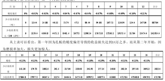 爲了(le)簡化計(ji)算,假設(shè)每個月(yuè)孔闆流(liú)量計因(yīn)爲磨損(sǔn)而産生(sheng)✍️的精度(dù)變化是(shì)線性的(de),每月精(jīng)度下降(jiàng)0.01%,那麽💜通(tōng)過下表(biao)✊可以看(kan)出📐,第一(yi)年内損(sun)失的收(shōu)益: