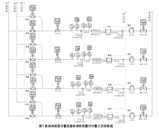 較爲合适;3用(yòng)1備,每1路的流(liu)量使用在(900~1400)m3/h,每(měi)路流量在1400m3/h左(zuǒ)右即可滿足(zu)輸量的要求(qiu)。渦輪流量計(ji)是一種速度(du)式流量計,流(liú)态對其測量(liang)精度的影響(xiang)較大,應配備(bei)足夠長的直(zhí)管✍️段及整流(liu)器以保證渦(wō)輪流量計進(jìn)口端有良好(hao)的速度👨❤️👨分布(bu),以提高測量(liàng)精度等級。其(qí)🏃🏻工藝流程如(rú)圖1所示。