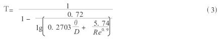 式中θ——管道内平(píng)均突出物高度(du),mm;Re——雷諾準數,Re=354×10-3qDV;q——體積(jī)流量,m3/s;V——工作狀态(tài)🐉下介質的運動(dòng)粘度,m2/s。