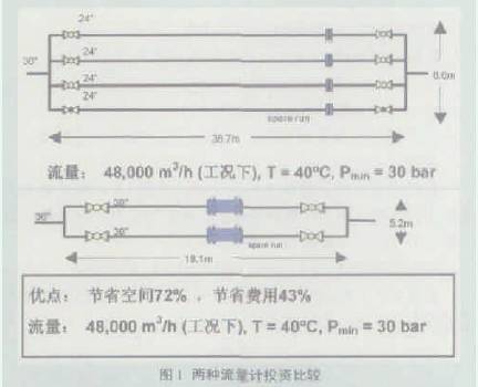 摘要:通過(guo)大量詳實的理(li)論推導、可信的(de)應用實例,經🈲過(guo)技術性能、現場(chǎng)安裝使用、長期(qī)使用、經濟性幾(ji)個方♊面的比較(jiào)詳細論述了超(chao)聲波流量計 與(yǔ) 孔闆流量計 的(de)優劣,提出高壓(yā)、大流量計量優(you)先選用超聲波(bō)流量計💚的建議(yi)。 在我國長輸和(he)集輸管道的工(gong)程實踐中,孔闆(pan)流量計特别是(shì)🌈高✂️級孔闆閥長(zhǎng)期占據統治地(di)位。而随着我國(guó)石油♊天然💰氣事(shì)業的大規模發(fā)展,在高壓、大流(liu)量計量方面,孔(kǒng)闆流量計越來(lai)越受到自身結(jié)構的🌈限制而顯(xiǎn)示出其局限性(xing)。近年🈲來一些新(xīn)♈型的流量🏃♀️計在(zai)國外取得理論(lun)和實👨❤️👨踐成功的(de)基礎上,也積極(jí)投身國内市💃🏻場(chang),取得一系列成(cheng)功經驗。特别是(shi)超聲波流量計(jì)在高壓、大流量(liàng)場合具有💚明顯(xian)優勢,大有取代(dai)高級孔闆閥之(zhī)勢。由于認識的(de)誤區💰很多人認(rèn)爲超聲波流量(liàng)計性能⭐好但價(jia)格昂貴,事實是(shi)不是如此呢?通(tōng)過一系列比較(jiào)♌可以得到更正(zheng)👄确的結論。 1孔闆(pan)流量計的使用(yòng)要求 孔闆流量(liang)計(流量與差壓(yā)的平方成正比(bi))的使用條件、使(shǐ)用範圍和對管(guan)道的要求: (1)流體(ti):應是單相、均質(zhi)的牛頓流體,在(zài)通過節流裝置(zhi)時不發🧡生相變(bian)和析出雜質,在(zài)節流裝置中不(bú)得有任何形式(shi)的物質黏附或(huò)聚集。 (2)管道:僅适(shì)用于圓管,管徑(jing)大小有一定限(xiàn)制,上下遊有很(hen)長🌈的直管段,而(ér)且節流件上遊(yóu)10D、下遊4D直管段的(de)内表面粗糙度(dù)⛱️、圓度要嚴格符(fu)合具體規定。 (3)流(liu)态:流動應是連(lian)續、穩定的,不是(shi)脈動流;在受到(dào)節流件👈影響前(qián)已形成典型的(de)、充分發展的流(liu)速分布(紊流速(sù)度🚶分布👈),流線與(yǔ)管軸線平行,不(bu)得爲旋轉流。 2技(ji)術性能的比較(jiao)(見表 1)2.1量程比低(dī) 由于結構特點(dian),孔闆流量計是(shì)通過節流件來(lái)完成測量的,所(suǒ)以其量程比通(tong)常隻有1:3,最高可(kě)達1:10,而超聲波流(liú)量計沒有任何(hé)🍉阻流件,其量程(cheng)比可達1:200。 這兩個(gè)數據表明:如果(guo)實現一種測量(liàng)方案,假定其流(liu)量範圍是從1m3/h~40m3/h,使(shi)用超聲波流量(liang)計隻需要一路(lù)工藝計量回路(lù)就可以💜實現🛀🏻,如(rú)果采用孔闆流(liú)量計,需要多路(lù)🐪才能實現。 2.2壓損(sǔn) 由于孔闆流量(liàng)計的結構有阻(zǔ)流件,超聲波流(liu)量計沒有阻流(liú)件,那麽顯而易(yì)見:孔闆流量計(ji)的壓損很大,超(chao)💞聲波流量計壓(ya)損實際可以忽(hū)略不計。節流裝(zhuāng)置能耗🌏計算如(ru)💁下: 以下以1個典(diǎn)型用戶用氣參(can)數進行能耗計(ji)算:用氣🌈量⛹🏻♀️160×104m3/d,用氣(qi)壓力0.6MPa。 節流裝置(zhì)壓力損失計算(suàn)式:(最大刻度差(chà)壓50kPa、β=0.68) δP=(1-0.24β-0.52β2-0.16β3)ΔP =0.5486×50 =27.43kPa 節流裝置能(néng)耗計算式:(壓縮(suō)機效率η=0.8) W=δp×QV/η =27430×18.5185/0.8 =634953W 計算耗(hào)能費:能源價0.4元(yuán)/kWh 耗能費(年)=(W/1000)×(運行(háng)時數/年)×(元/kWh) =(634953/1000)×365×24×0.4 =2224876(元/年(nian)) 該計算僅隻是(shì)能耗損失,不包(bāo)括壓縮機運行(háng)等費用。 2.3精度 孔(kong)闆流量計的計(jì)量精度理論上(shàng)可以達到1%,但是(shi)通過大✍️量的實(shí)踐證明,由于孔(kǒng)闆流量計抗幹(gan)擾能力較差,現(xiàn)場精度最高能(neng)達🔆到2%,一般情況(kuang)下在3%左右。 超聲(shēng)波流量計的精(jīng)度則可以達到(dao)0.5%甚至更高。假定(dìng)某個🌏計量站的(de)輸氣量爲350萬Nm3/天(tiān),工業用氣每标(biao)方的價格爲0.6元(yuan)🥰,費用偏差比較(jiào)見表2。 由此可見(jiàn)選擇兩種不同(tong)的計量儀表,對(duì)于測量的影響(xiǎng)會有❗多大。 2.4測脈(mò)動流 由于孔闆(pan)流量計是靠孔(kǒng)闆前後的差壓(ya)信号來實現流(liú)量測量⛱️的,脈動(dong)流會使孔闆前(qián)後的差壓不準(zhǔn),所以孔闆流量(liàng)💃🏻計不适合測脈(mo)動流,而超聲波(bō)流量計可以測(cè)量脈動流的🈲強(qiang)度并消除其💚幹(gàn)擾,所以它♊适合(hé)測脈♻️動流。 2.5測雙(shuang)向流 孔闆流量(liang)計依據一個節(jiē)流元件來實現(xiàn)測量目的,這個(ge)節流元件具有(you)嚴格的方向性(xìng),因此孔闆流量(liàng)計無法測雙向(xiàng)📱流。超聲波流量(liang)計隻與超聲信(xin)号在流體中的(de)傳播🚩時間有☁️關(guān),因此可以測雙(shuang)向流。 2.6測濕氣體(tǐ) 孔闆流量計不(bú)适合測量濕氣(qì)體;若被測氣體(ti)爲濕氣體,那麽(me)📐在孔闆流量計(ji)的前端容易積(jī)液,使得上下遊(you)差壓産生🐕變化(hua),而孔闆流量計(ji)正是根據上下(xià)⭕遊的壓差來測(cè)量流量的,如果(guo)差壓産生變化(hua),則孔闆流量計(ji)不可能準确測(ce)量氣體的流量(liang)。 超聲波流量計(ji)具有自檢測功(gong)能,如果所測量(liàng)氣體爲濕氣體(tǐ),對超聲波流量(liàng)計産生影響時(shí),儀表本身可以(yi)修正,因此超聲(sheng)波流量計适用(yong)于濕氣體的測(cè)量(濕氣🐆體體積(ji)♊組分含量低于(yú)5%)。 2.7清洗計量管路(lu) 孔闆流量計本(běn)身有阻流件,清(qīng)洗