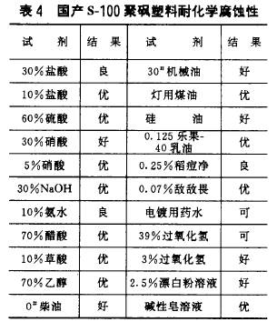 國産S一100聚礬塑(su)料耐化學腐蝕性(xing)見表