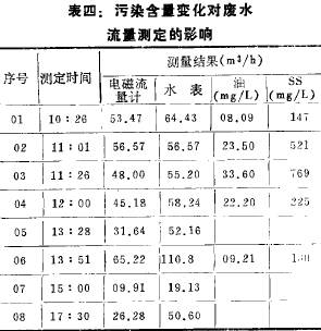 3.廢水中(zhong)污染物含量變化(huà)對流量測定的影(yǐng)響:爲了考察該廠(chǎng)工業廢水中主要(yao)污染物石油類、懸(xuán)浮物含量變化對(duì)流量測定的影響(xiang),攪動平流隔油池(chí)底部,使工👅業廢水(shuǐ)🐆中主要污染物💜石(shí)油類、懸浮物含量(liang)增加,測定廢水徘(pái)放量,同時測定廢(fei)水中石油類、懸浮(fú)物含量,測定結果(guǒ)如表四所示。