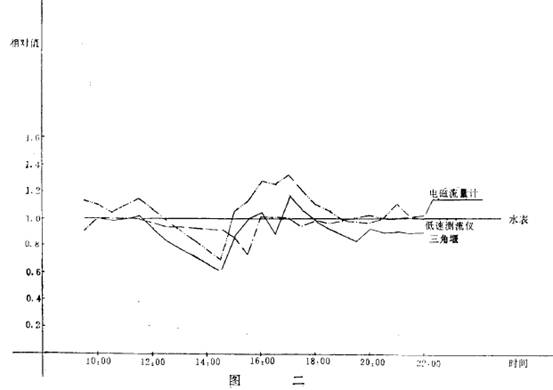 2.試驗數據(jù)的處理與分析:以(yǐ)标準水表的流量(liang)測定值爲基準,計(ji)算出其它三種流(liu)量測髦方法同步(bù)測量的流量與标(biāo)㊙️準水表流量測定(dìng)值的比值(相對流(liú)量),并列出相對流(liu)量的🧑🏾🤝🧑🏼極大值和極(ji)小值(見表二)。相對(dui)流量變😘化曲線如(rú)圖二所示。