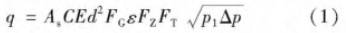 式中(zhōng),q爲标準狀态下天(tian)然氣體積流量,m3/s; A,爲(wèi)秒計量系數,視采(cai)用計量單位而定(ding),此處A. =311 794x10-6; C爲流出系數(shù); E爲漸近速度系數(shu); d爲孔闆直徑,mm; Fc 爲相(xiang)對密度系數; ε .爲可(kě)膨脹系數; Fz爲超壓(ya)縮因子; Fr爲流動溫(wēn)度系數; P:爲孔闆上(shang)遊側取壓孔氣流(liu)絕對🤞靜壓,Pa;Ap爲氣流(liu)流經孔闆時産生(sheng)🤞的壓差,Pa。
