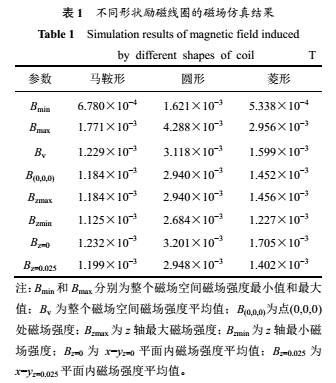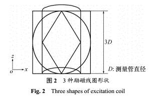 勵(li)磁線圈的形(xíng)狀常見的有(you)圓形、菱形和(he)馬鞍形3種。對(dui)相同用料下(xià)不同形狀勵(li)磁線圈産生(shēng)的磁場的強(qiang)度以及均勻(yun)度進行仿真(zhēn)比較。3種勵磁(cí)線圈的形狀(zhuang)如圖2所示。