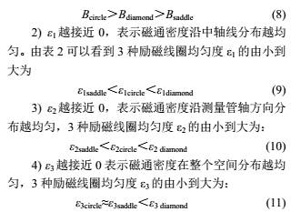 表1所示爲(wèi)在勵磁線圈(quān)軸向長度相(xiang)同、用料相同(tóng)及勵磁條件(jiàn)相同下進行(háng)仿真所得結(jie)果。對3種線圈(quan)的磁場進行(hang)計算,各自對(dui)應的3個指标(biāo)ε,e2和83如表2所示(shì)。.
