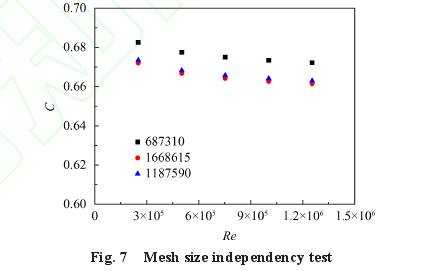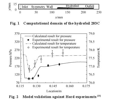 摘要(yào):平衡型低溫(wen)流量計 可用(yòng)于低溫推進(jin)劑的加注、分(fèn)配、輸送等環(huán)節,其孔闆結(jie)構特征是影(ying)響流量計性(xing)能的關鍵因(yīn)素。爲了研究(jiu)孔闆倒角對(duì)平衡型低溫(wēn)流量計流出(chū)系數、壓力損(sǔn)失系數和穩(wěn)定性的影響(xiang),建立了基于(yú)Mixture多相流模型(xing)、Schnerr-Sauer空化模型和(he)Realizablek-ε湍流模型的(de)CFD數值模型,并(bing)結合文獻中(zhōng)的水翼空化(hua)實驗和多孔(kong)闆流動實驗(yàn)的結果驗證(zheng)了模型的可(ke)靠性。模拟計(ji)算結果顯示(shì),開設前倒角(jiǎo)會增大多孔(kǒng)闆的流出系(xì)數,減小壓力(lì)損失系數,但(dan)會增大流量(liàng)計測量時的(de)不穩定性;45°的(de)前倒角使流(liú)出系數由0.674增(zeng)大到0.907,适當開(kāi)設前倒角可(kě)以有效提高(gao)流量計的工(gong)作性能。而開(kāi)設後倒角對(dui)流量計性能(néng)的影響較小(xiǎo)。用于流體流(liú)量的雙向測(ce)量時,可對多(duo)孔闆的前後(hou)端均開設45°的(de)倒角。 1引言 孔(kǒng)闆流量計 因(yin)其結構簡單(dan)、可靠性高和(he)流體适用性(xing)廣等優點,目(mu)前已廣泛地(di)應用于石油(yóu)和化工等領(lǐng)域。然而,當流(liú)體流經孔闆(pan)時會發生節(jie)流壓降,容易(yì)發生空化現(xiàn)象,此外也會(hui)造成較大的(de)局部壓力損(sǔn)失,這會對流(liú)量計的性能(neng)和設備安全(quan)帶來影響。另(ling)一方面,空間(jian)技術的快速(sù)發展對低溫(wen)流體流量測(ce)量精度的要(yào)求也越來越(yuè)高[1]。低溫推進(jìn)劑的加注、分(fen)配、輸送等環(huan)節都離不開(kai)流量的精度(du)高測量。多孔(kǒng)闆可以平衡(héng)調整流場[2],流(liú)體流經多孔(kǒng)闆後受到的(de)擾動和壓力(li)損失比标準(zhǔn)孔闆小,因而(er)在低溫流體(tǐ)測量領域的(de)應用潛力大(dà)。 在過去的幾(ji)十年間,多孔(kong)闆的研究受(shou)到大量關注(zhu),主要集中于(yu)結構參數和(hé)運行工況對(dui)其流出系數(shù)和壓力損失(shī)系數的影。 可(ke)以發現,以前(qian)對多孔闆流(liú)量計的研究(jiū)多集中于常(chang)溫流體,如空(kōng)氣和水等,對(duì)應用于航天(tian)推進技術領(ling)域的低溫流(liu)體等研究相(xiàng)對較少。此外(wài),低溫流體流(liú)經多孔闆後(hou)易發生空化(huà)現象,在研究(jiū)多孔闆流量(liàng)計适用于低(dī)溫流體的性(xing)能研究時,需(xu)要建立并驗(yan)證考慮低溫(wēn)流體空化流(liu)動的數值模(mo)型。同時,對孔(kǒng)闆結構參數(shù)的研究多集(jí)中于孔闆直(zhi)徑比、孔闆厚(hou)度、開孔直徑(jìng)、孔分布方式(shì)等,很少涉及(ji)到孔闆倒角(jiao)。 拟以低溫流(liú)體液氮爲介(jiè)質,采用數值(zhi)方法研究孔(kong)闆倒角對平(ping)衡型流量計(jì)低溫流體流(liú)量測量性能(neng)的影響,計算(suàn)模型将考慮(lü)低溫流體的(de)空化效應。 2方(fang)法 2.1數學模型(xing)及驗證 液氮(dàn)流經多孔闆(pǎn)後,因節流壓(yā)降,在一定工(gōng)況下流場壓(yā)力會小于相(xiàng)應溫度下流(liú)體的飽和壓(yā)力,誘發空化(huà),此時流體流(liú)動 爲氣液兩(liǎng)相流。将氣液(ye)兩相看成混(hùn)合物單相,采(cǎi)用混合物多(duo)相流模型求(qiú)解連續性方(fāng)程、動量方程(cheng)和能量方程(chéng)。基本控制 方(fāng)程如下 式中(zhōng)下标m,l和g分别(bié)表示混合相(xiang)、液相和氣相(xiàng);a爲體積分數(shu);p,v,μ,t,p,T和h分别爲密(mì)度、速度、動力(li)粘度、時間、壓(ya)力、溫度和焓(han);keff爲有效導熱(re)系數;SE爲體積(jī)熱源;?dr.;爲相i的(de)漂移速度。 Schnerr-Sauer空(kōng)化模型已被(bei)用于低溫流(liú)體空化的數(shu)值計算[19-20]。其具(jù)體表達式爲(wèi)[21]分别表示氣(qì)泡生成、氣泡(pao)破裂和飽和(he)蒸汽。 此外,采(cai)用Realizablek-ε湍流模型(xing)進行湍流閉(bì)合,它滿足雷(lei)諾應力的數(shu)學約束,與實(shí)際湍流過程(chéng)一緻。與标準(zhun)k-ε模型相比,改(gai)進了湍流粘(zhān)性的計算,并(bìng)基于均方渦(wō)波動的輸送(sòng)方程建立了(le)新的ε方程。對(dui)涉及旋轉、強(qiáng)逆壓梯度下(xia)的邊界層,分(fen)離和回流等(deng)流動,Realizablek-ε模型可(ke)得到較好的(de)預測結果。湍(tuān)動能k和湍流(liu)擴散率ε的輸(shu)送方程爲 是(shì)因平均速度(du)梯度生成的(de)湍動能。 采用(yòng)Hord等[23]的液氮水(shuǐ)翼空化實驗(yàn)283C來驗證上述(shu)數學模型在(zai)模拟低溫流(liú)體空化流動(dong)時的可靠性(xìng)。水翼結構和(he)計算域如圖(tú)1所示,且實驗(yan)中液氮的進(jin)口溫度爲77.71K,自(zi)由來流速度(dù)爲14.5m/s,空化數爲(wei)1.8。模拟中采用(yong)速度進口和(he)壓力出口,y=0處(chu)設爲對稱邊(bian)界條件,壁面(miàn)設爲無滑移(yi)壁面。計算結(jié)果和實驗結(jie)果的對比如(rú)圖2所示。水翼(yi)壁面壓力和(he)溫度的數值(zhí)及随 位置的(de)變化規律基(jī)本吻合,考慮(lǜ)到實驗誤差(cha)及模拟對實(shi)際問題的簡(jian)化,可以認爲(wei)數值計算模(mó)型可以有效(xiao)地用于模拟(nǐ)低溫流體 的(de)空化流動。 此(cǐ)外,選取Huang等[26]的(de)多孔闆流動(dong)實驗結果,來(lai)驗證數值模(mó)型用于流體(ti)多孔闆流動(dong)的準确性。孔(kong)闆結構如圖(tú)3 所示,采用了(le)實驗中編号(hao)爲No.1的多孔闆(pan),管路内徑D、開(kai)孔直徑d0、内圈(quān)開