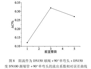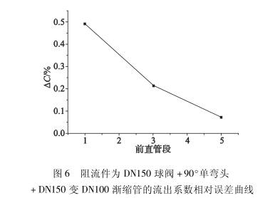 從(cóng)表3和圖6可以看出(chu),随着前直管段長(zhang)度的增長,流出系(xì)🌈數相對誤差呈減(jiǎn)小趨勢。