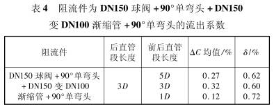 1.2.4. 上遊阻流(liú)件類型一-DN150球閥+90°單(dan)彎頭+DN150變DN100漸縮管+90°單(dan)彎頭的實驗研究(jiū)