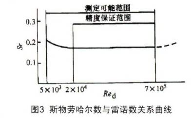 斯特羅哈爾數(shu)爲無量綱參數,它(ta)與漩渦發生體的(de)形狀及雷諾數有(you)關。圖3所示爲三角(jiǎo)柱漩渦發生體的(de)斯特勞哈爾數.與(yǔ)🚶♀️管道雷諾數的關(guan)系。