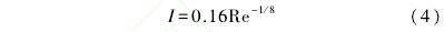 式中V爲(wèi)入口速度,D爲(wei)管道直徑,η, 爲(wei)壓強爲101.325 kPa、 溫度(dù)爲20 C的條件下(xià)空氣的運動(dong)黏度根據式(shì)(4)計算出湍流(liú)強度1=4.345%[8]。