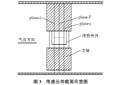 采用FLUENT軟件10-1]1分(fèn)别對這9種模(mo)型設置相同(tóng)的邊界條件(jian),進❄️行數🛀值🌈模(mó)拟計算。分别(bié)計算傳感元(yuan)件不同位置(zhi)的平均速度(du)。選取傳感元(yuan)件中心截面(miàn)的編号爲plane-5。按(àn)軸向方向在(zài)plane-5前後分别依(yī)次取5個截面(miàn)🌐,前面兩截面(miàn)平行距離爲(wei)0.24 mm,分别編号爲(wèi)plane-0, plane- 1, plane-2...共11個截面,如(ru)圖3所示,這些(xiē)截面上的面(mian)平均速度可(ke)通過數值計(ji)💘算獲得。