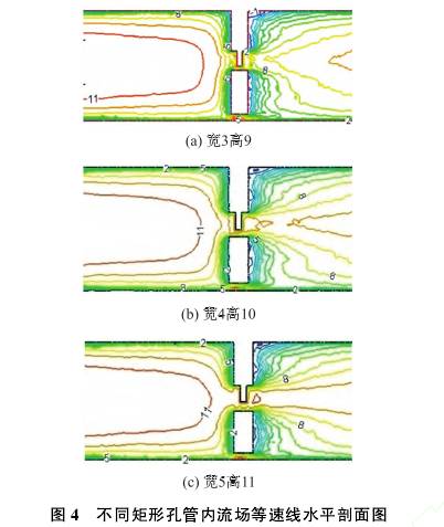 圖4所(suo)示爲幾種矩(jǔ)形孔的管内(nei)流場等速線(xian)水平剖面圖(tú)