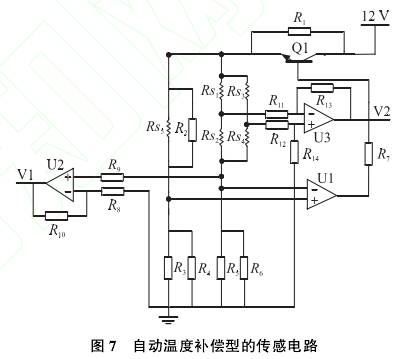 一種(zhǒng)新型的流量(liàng)傳感電路,如(ru)圖7所示。傳感(gan)元件由熱🛀電(dian)阻R, R,R、R,、R.,構成,與精(jīng)密電阻R2、R3、R.、Rs、R。構成(cheng)惠斯通電橋(qiao),該電路能實(shi)🔞現溫度補償(chang),并能檢測管(guǎn)道中氣體的(de)方向。電路中(zhōng)精密電阻R2與(yǔ)熱電阻R并聯(lian)不僅防⭐止通(tōng)過R..的電流過(guo)大,而🌈且可提(tí)高🏃♀️溫度補償(cháng)的準确度。爲(wèi)了使傳感元(yuan)件輸出與氣(qi)體溫度無關(guan)的穩定電壓(yā),理想情況下(xià)在任何環境(jing)溫度下應滿(man)足式(9)。