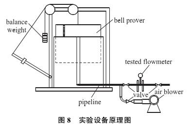 運用鍾罩式(shi)氣體流量标(biāo)準裝置進行(háng)氣體流量測(cè)試。裝置運用(yong)💰鼓風機進行(hang)鍾罩的充氣(qi),三個閥門用(yòng)于控制氣體(ti)流動。該設備(bei)的測量不确(què)定度爲0.5%,其能(néng)夠供給🌏的流(liu)量🏃🏻範圍爲0~220 m'/h。設(shè)備原🈚理圖如(ru)✂️圖8所示,實物(wù)💃🏻圖如圖9所示(shi)