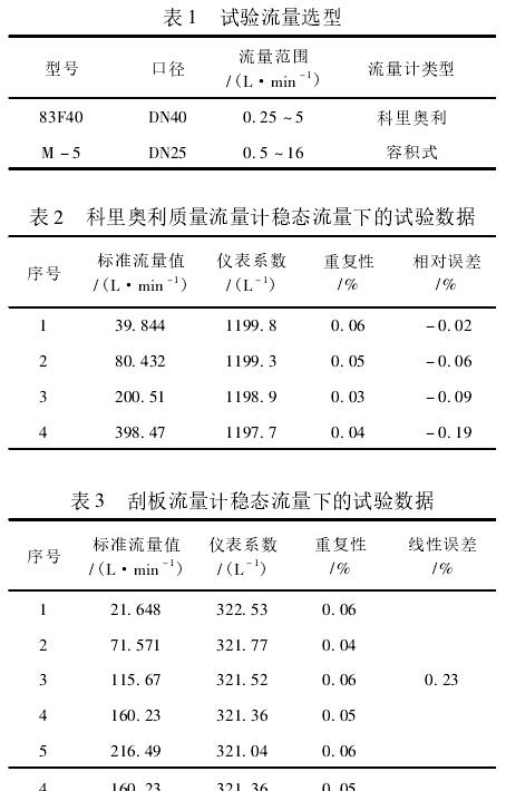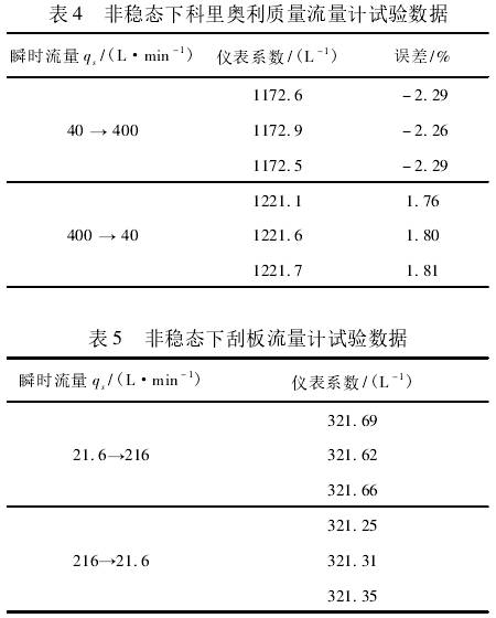 摘要:在實際應用(yong)中,燃油流量計 常(cháng)會工作于非穩定(dìng)流量狀态下,此時(shi)流量計的計量性(xing)能可能會發生變(biàn)化。利用燃油動态(tai)流量标準㊙️裝置,對(duì)科裏奧💋利質量流(liú)量計和容積式刮(guā)闆流量計分别進(jin)行非穩态流🤟量試(shì)驗,分析了非穩态(tai)流量環境對這兩(liang)種流量計測量結(jie)果的影響,并給出(chū)了🚶♀️使用和校準建(jiàn)議。 0引言 目前,實驗(yàn)室均是在穩态流(liú)量條件下,對 流量(liang)計 進行檢定或校(xiào)準試驗,即通過流(liu)量标準裝置提供(gong)穩定的标準流量(liang),将流量計的示值(zhí)與标準流量值進(jìn)行比較✏️,計算誤差(chà)💁,從而評價流量計(jì)的計量性能,例如(ru): 渦輪流量計 檢定(ding)規程要求在特定(ding)流量點下進行試(shi)驗,并且要求“在檢(jian)定過🏃♀️程中,每調整(zheng)一個流量點,都應(yīng)待壓力、溫度、流量(liàng)穩定後方可進行(háng)檢定”山。然而實際(ji)工況中的流量往(wang)往是非穩态的,例(li)🔅如飛機在起飛、爬(pa)升🏃🏻♂️、俯沖、巡航、加力(li)、滑翔、降落等飛行(hang)狀态時,發動機的(de)耗油速率、耗油量(liàng)均會發生急劇變(bian)化,燃油管道内💋會(hui)産生流場👌變㊙️化和(he)壓力變化,因此有(yǒu)必要對流量計非(fēi)穩态📐下的計量性(xing)能進行研究💯。 近年(nián)來,國内學者針對(dui)渦輪流量計和科(kē)裏奧利質量流量(liang)進🔴行了動态響應(yīng)的理論分析和仿(páng)真口2-3,但相關🚩試驗(yàn)相對較少💞。利用🤟燃(ran)油動态流量标準(zhǔn)裝置,對科裏奧利(lì)質🔞量流量計和容(rong)積式刮闆流量計(jì)分❌别進行非穩态(tai)流量試驗。 1流量計(jì)原理及數學模型(xing) 1.1科裏奧利質量流(liú)量計 科裏奧利質(zhì)量流量計基于科(kē)裏奧利力效應,直(zhí)接.測🧑🏾🤝🧑🏼量流體的質(zhì)量流量,簡稱科氏(shi)質量流量計(CoriolisMassFlowmeter,CMF)。該流(liu)量計🚶♀️内部📧設計有(yǒu)振動的測量管,流(liú)體在測量管中的(de)流動相當于直線(xian)運👌動,而測量管的(de)振動會産生一個(gè)角速度,由于振動(dòng)是受到💘外加電磁(cí)場驅動的‼️,有着固(gù)定的頻率,因此,流(liu)體在管道中受到(dào)的科裏🏃♂️奧利力僅(jin)與其質量和運動(dòng)速度有關,而質量(liang)和運動速度及流(liu)速的乘積就是需(xū)要測☀️量的質量流(liú)量🐇,因此通過測量(liang)流體✂️在管道中受(shòu)到的科裏奧利力(li),便可以測量其質(zhi)量流量。其數學模(mo)型爲 當流體流過(guo)振動的測量管時(shí),在測量管中産生(sheng)的✔️科裏🏃奧利力會(huì)引起振動管發生(shēng)微小變形,從而産(chan)生進口和出口的(de)相位差,如圖1所示(shi)。當流量爲零時,即(jí)流體停滞不流動(dòng)時,入口A和出口B處(chu)的相位差爲零。當(dang)有流🛀體流過時,測(cè)量管入口A處振動(dòng)減速,出口㊙️B處振動(dòng)加速,當質量流量(liàng)增加時,相位🔴差也(yě)增加,通過入口和(hé)出口㊙️的電磁式相(xiàng)位💰傳感器,即可測(cè)量管子的振動相(xiang)位。科裏奧利🐆質量(liang)流量計的K系數就(jiù)是質量流量與相(xiàng)位差的特征數。 1.2容(rong)積式流量計 容積(jī)流量計是一種利(lì)用定容積器件連(lian)續測量流💛體總量(liang)的儀表,亦稱爲正(zhèng)排量流量計(PositiveDisplace-mentFlowmeter,PDF)[4]。選用(yòng)的容積式刮🐪闆流(liu)量計的結⛹🏻♀️構如💋圖(tú)2所示,其結構由柱(zhù)形計量腔體、一個(ge)阻塞轉子(Blockingrotor)和兩個(ge)移動轉🌂子(Displace-mentrotors)構成。在(zài)轉子轉動的一個(ge)周期内的任何位(wei)置,計量🏃腔體、阻塞(sai)💞轉子以及至少一(yi)個位移🔱轉子之間(jiān)始✍️終保持着連續(xù)的密封。 當流體通(tōng)過流量計時,會推(tui)動計量腔内部的(de)轉子轉動,轉♈動中(zhōng)❤️的轉子将流體分(fèn)割,流體的流動與(yǔ)轉子的轉動同時(shi)進行。當流體進入(ru)計量腔時,流體不(bú)斷的被分割和測(ce)量,與此同時前部(bu)的🏃🏻♂️流體通過流😘量(liàng)計并進入下遊管(guan)道。由于計量腔的(de)容🙇♀️積是已知的,且(qiě)阻塞轉子的每一(yī)次旋轉中通過流(liu)量計的體積量都(dou)是相同✔️的,通過測(cè)量轉子的轉數,即(jí)可🚶得到通過流量(liàng)計的累積流量。容(róng)積式流量計的理(lǐ)論公式🔆爲 Q=Kn (2) 式中:Q爲(wèi)流體總量;K爲儀表(biao)系數;n爲分割流體(ti)機構的轉🥰數。 2非穩(wen)态流量源 本次試(shi)驗所使用的标準(zhun)裝置爲燃油動态(tài)流量标準裝🐅置,該(gai)裝置采用主動式(shì)活塞體積管作爲(wei)标準器,其擴展測(cè)量🔞不确🔆定度U=0.05%(k=2),原理(lǐ)如圖4所示。 燃油動(dong)态流量标準裝置(zhì)的工作原理爲:工(gong)作過程🏃♂️.中電機✍️旋(xuán)💘轉,驅動滾珠絲杠(gang)帶動标準體積管(guǎn)活塞左行,排出液(yè)體流經控制閥門(men)及被檢流量計後(hòu)經過過濾器回到(dào)儲油箱;同時,儲油(you)箱裏的油經過下(xia)💋遊管段進入标準(zhǔn)體積管。通過設置(zhi)電機的轉速實現(xian)非穩态流量,通過(guò)采集光栅值來确(que)定活塞的移🌏動位(wèi)置,由于截面積已(yǐ)知,可準确計算得(dé)到标準流量值。. 3試(shi)驗結果分析 選用(yong)直管式科裏奧利(li)質量流量計和容(róng)積式刮闆流量計(ji)作
