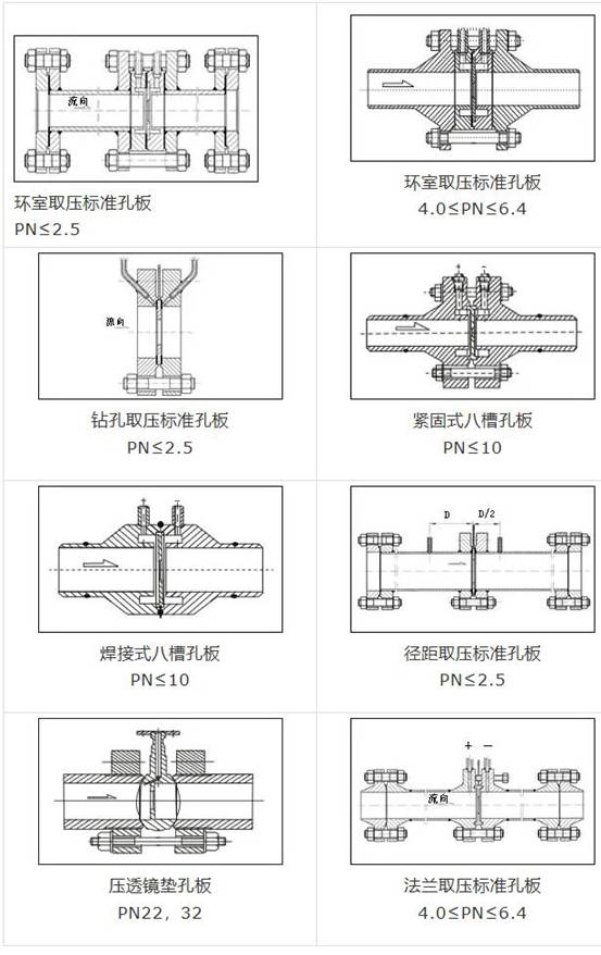 節流件(jiàn):标準孔闆、标準(zhun)噴嘴、長徑噴嘴(zuǐ)、1/4圓孔闆、雙重孔(kong)闆、偏心孔闆、圓(yuan)缺孔闆、錐形入(ru)口孔闆等