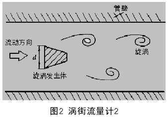 如圖2,當渦(wō)街流量計進行(hang)測量時,當流體(ti)經過迎流面插(cha)入的非流線性(xìng)漩渦發生體時(shí),流體在漩渦發(fā)生體兩側交替(tì)地分離釋放.出(chu)兩列規則的漩(xuan)渦。已有研究表(biǎo)明,該漩渦分離(lí)的頻率與介質(zhì)的流速以及漩(xuán)渦發生體的尺(chǐ)寸有着内在聯(lián)系,因此,在漩渦(wo)發生體幾何尺(chi)寸确定的情況(kuàng)下,通過測量漩(xuan)渦頻率便可以(yi)測出流體的流(liu)速和瞬時流量(liàng)。